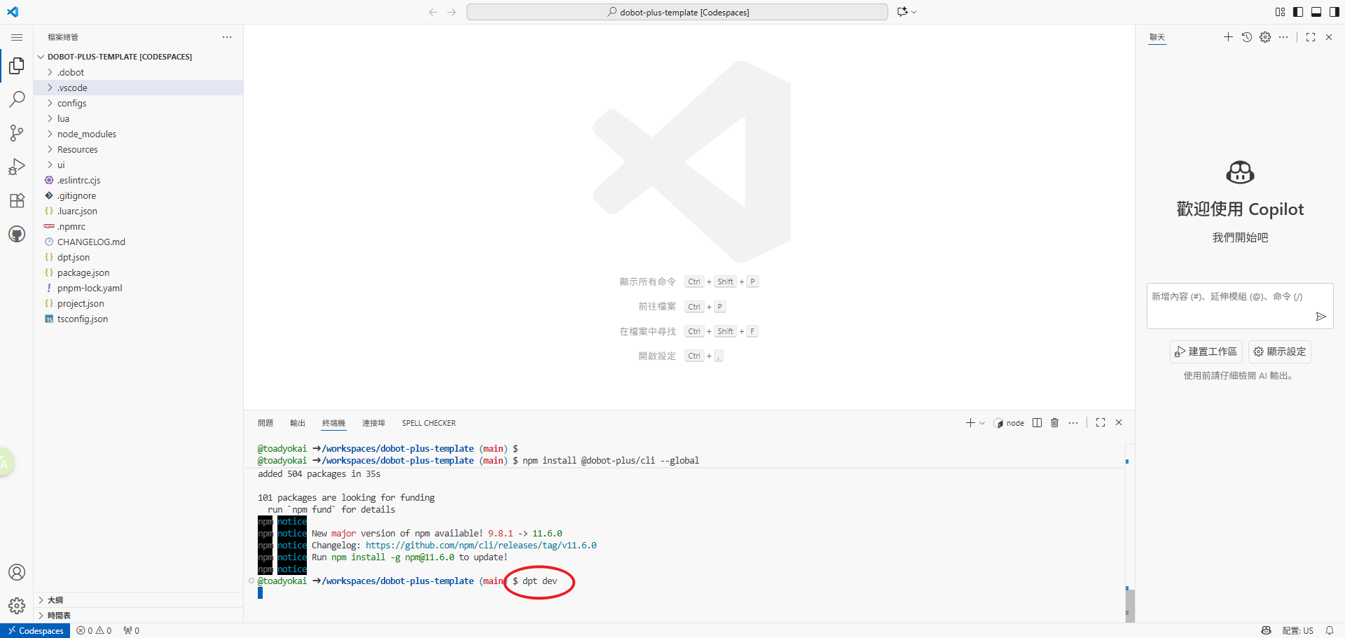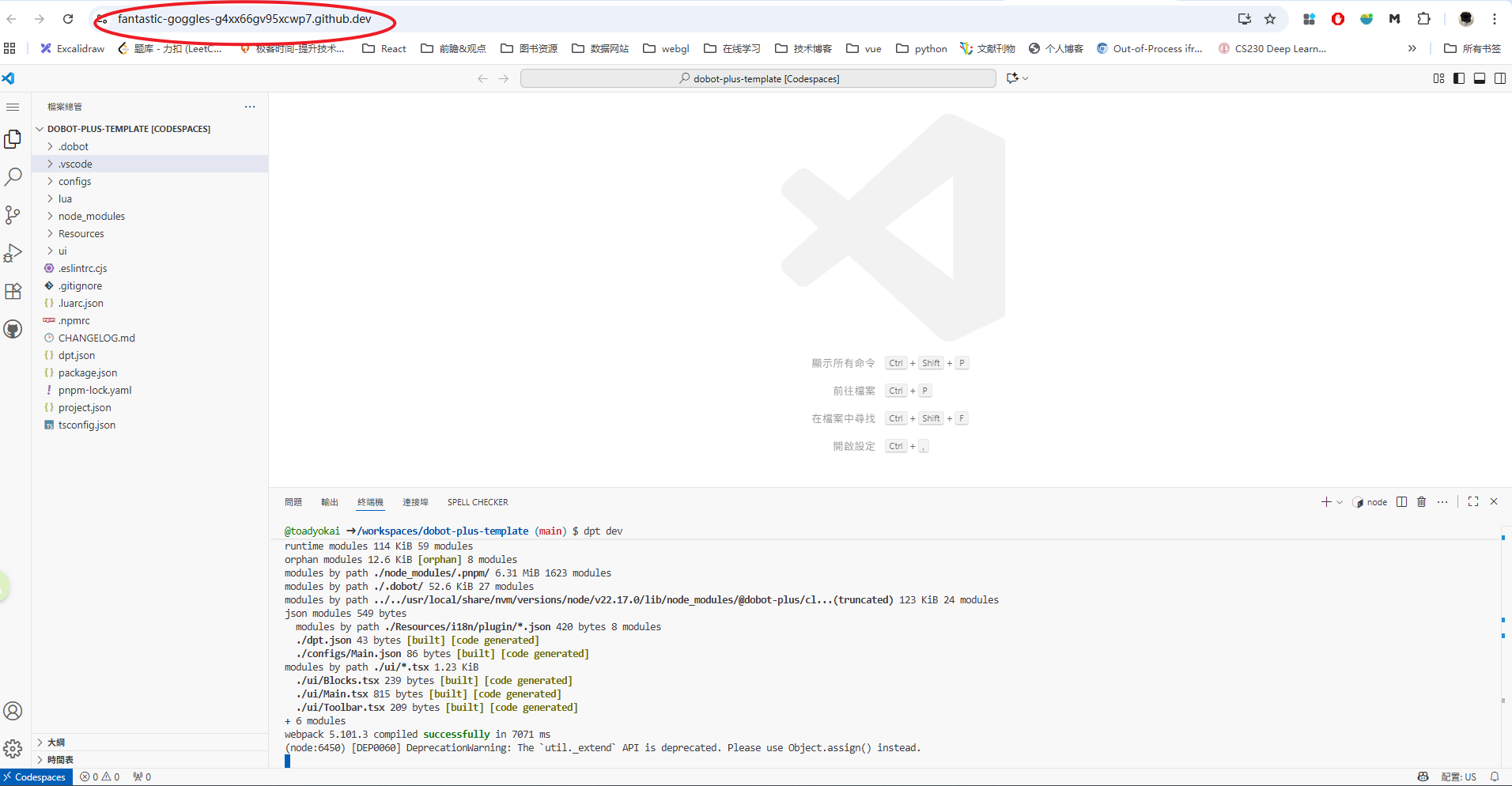 Dobot+ plugin development also supports cloud development in GitHub Codespaces.