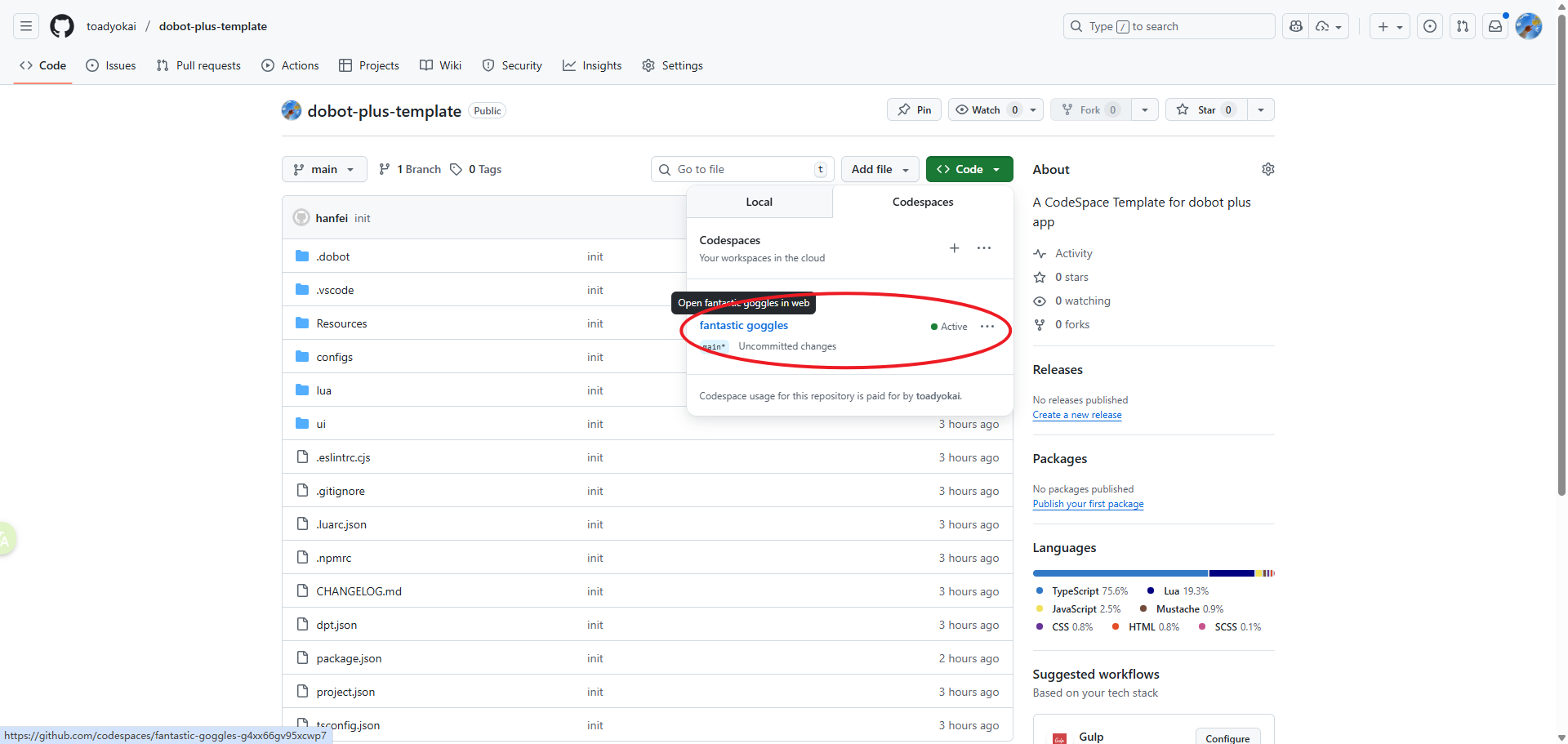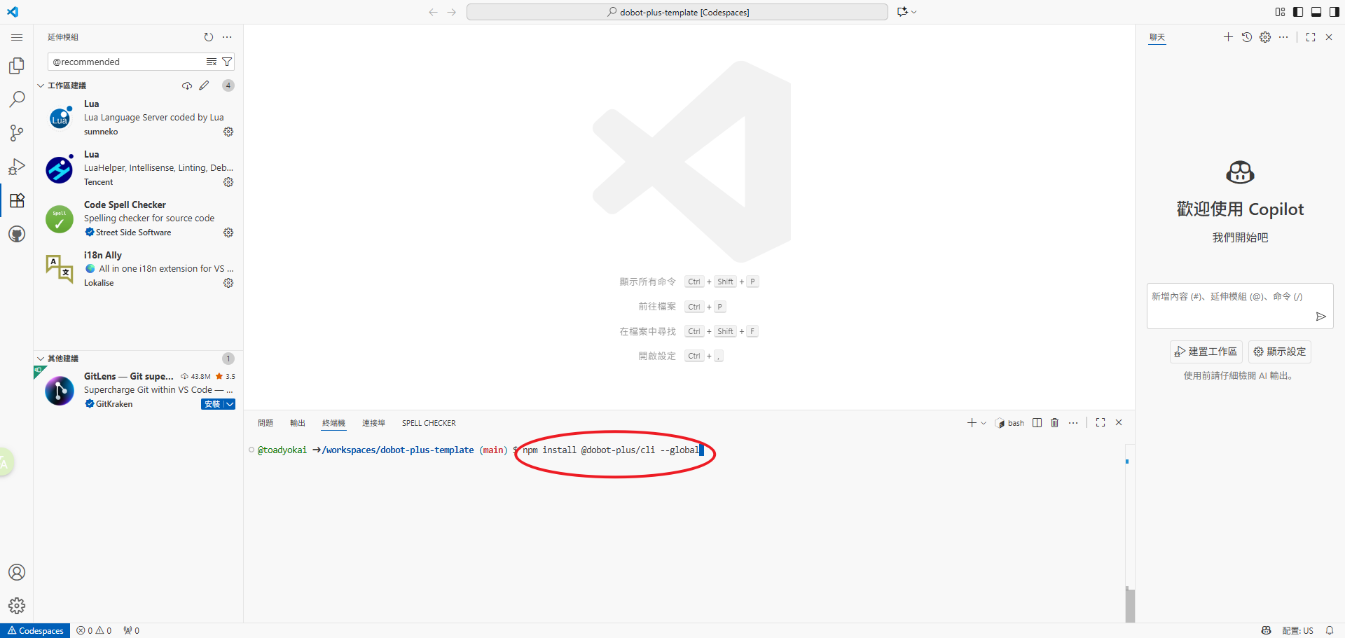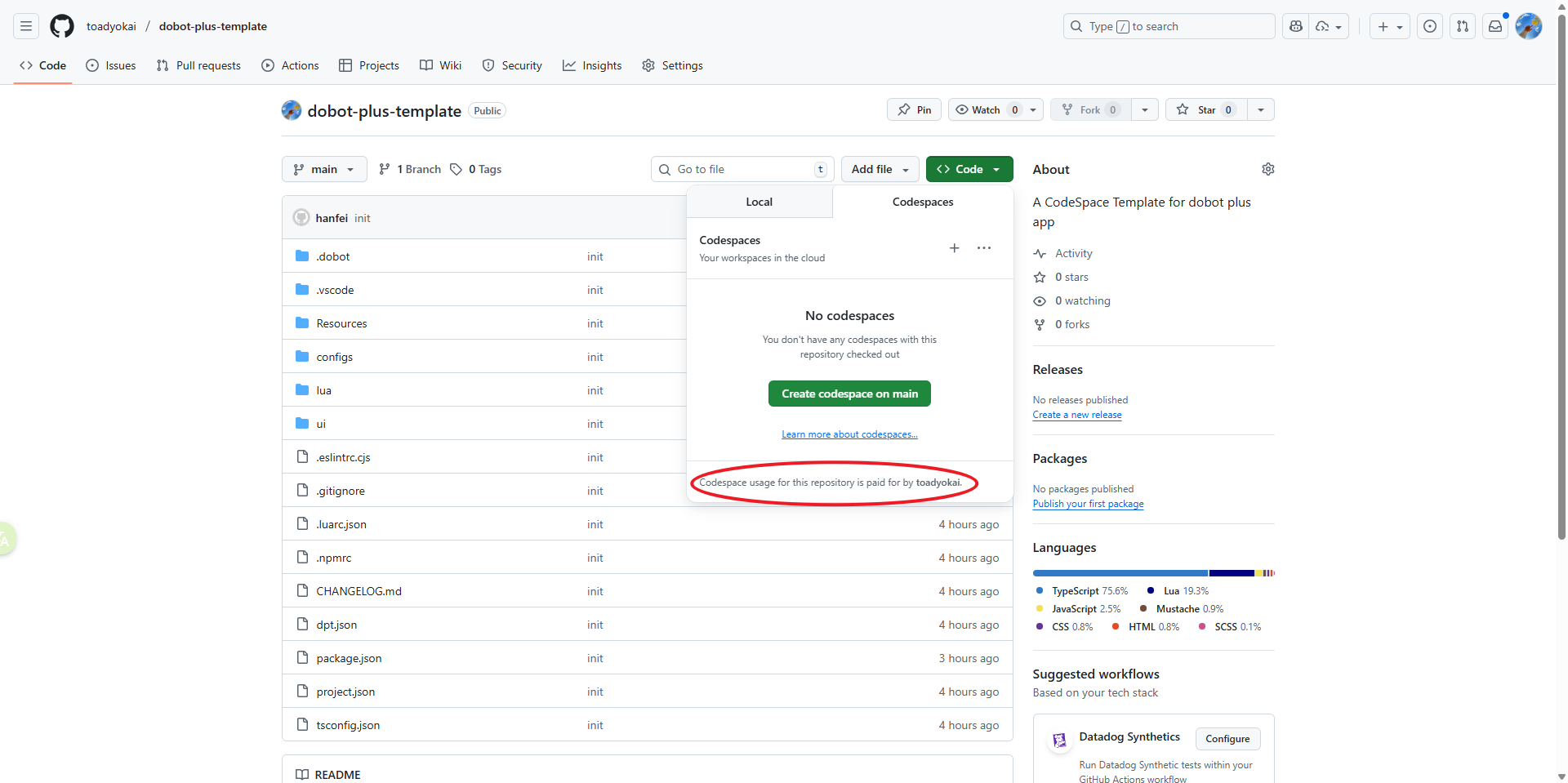 Dobot+ 插件的开发也支持在 Github 的 Codespaces 中进行云端开发。